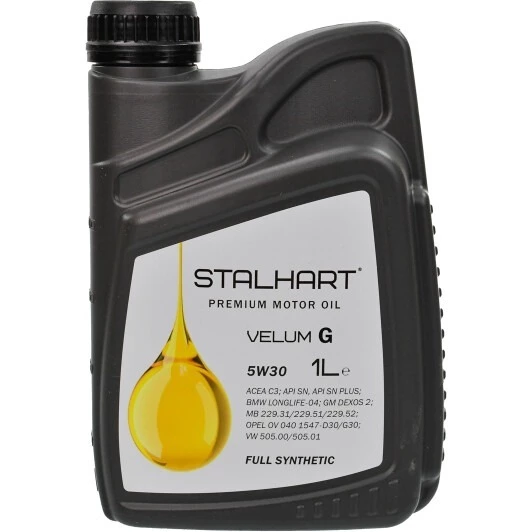 STALHART VELUM G 5W-30 – синтетична моторна олива з енергоощадними властивостями, розроблена спеціально для сучасних бензинових та дизельних двигунів (з турбонаддувом або без) легкових автомобілів. Підходить для дизельних моторів, оснащених системою насос-форсунок.