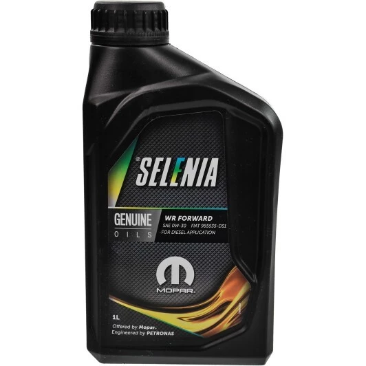 Повністю синтетична моторна олива Petronas Selenia WR Forward 0w-30 – це високоякісний продукт, розроблений спільно з концерном FCA для сучасних дизельних моторів без сечовини, які відповідають нормам екологічного стандарту Євро 6. Продукт відповідає технічним вимогам специфікації ACEA C2. Крім цього, олива також має допуск Fiat 9.55535-DS1 і може використовуватися у двигунах, яким він необхідний.