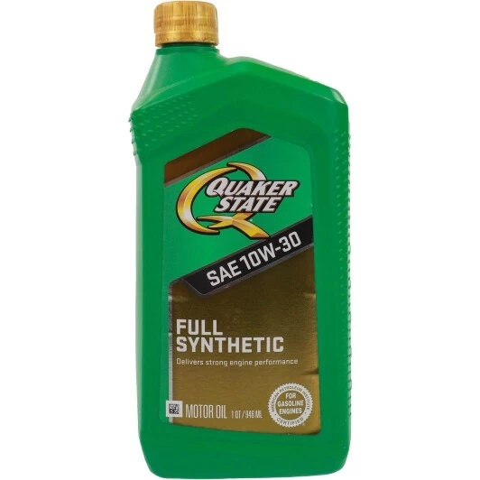 QUAKER STATE Full Synthetic 10W-30 моторна олива – універсальний синтетичний мастильний матеріал, розроблений для атмосферних і турбованих бензинових двигунів.
