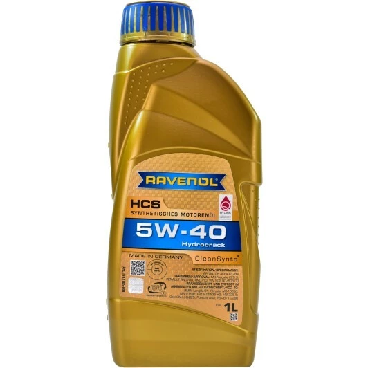 Ravenol HCS 5W-40 створена на синтетичній основі, яку виготовили за технологією гідрокрекінгу. Отже, олива має підвищену текучість, що необхідно для змащення щільно розташованих вузлів тертя у нових, оптимізованих двигунах європейського зразка. Окрім цього, тут застосована особлива запатентована технологія CleanSynto. Олива, зроблена Ravenol, розчиняє сажеві нашарування на поверхні деталей і проникає у будь-які важкодоступні місця.