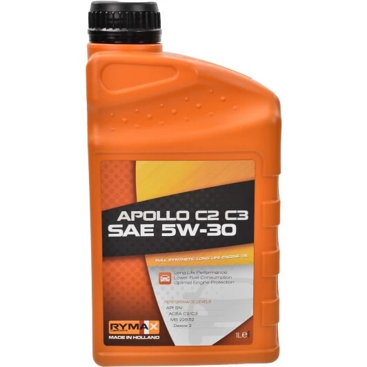 Rymax Apollo C2 C3 5w-30 – моторна олива на повністю синтетичній основі, спеціально розроблена для сучасних бензинових та дизельних моторів, які обладнані багатоступеневим каталітичним нейтралізатором (TWC) або сажовим фільтром (DPF). Підходить для легкових автомобілів, яким необхідний мастильний матеріал, що відповідає стандартам ACEA C2, C3.