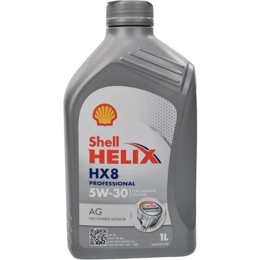 Shell Helix HX8 Professional AG 5W-30 – це повністю синтетична моторна олива, розроблена для високопродуктивних бензинових двигунів, що працюють у легкових автомобілях. Може застосовуватися в моторах, яким необхідний мастильний матеріал з класом в'язкості SAE 5W-30 та новітніми специфікаціями API SP та ILSAC GF-6A.