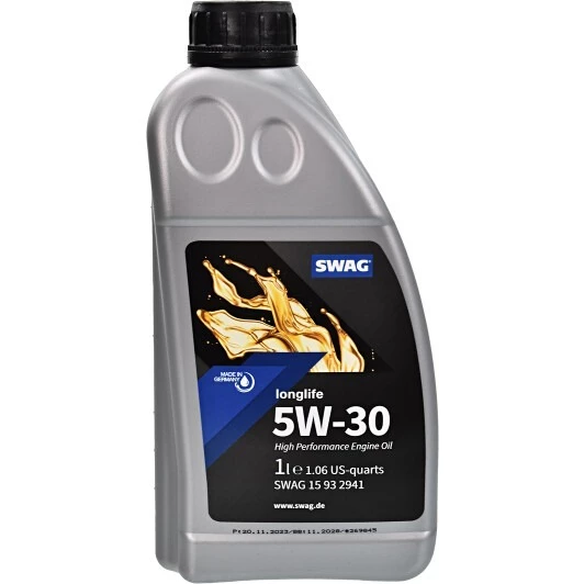 Моторна олива SWAG Long Life 5W-30 синтетична - універсальна і низькозольна. Дуже добре підходить для застосування у сучасних легкових автомобілях із потужними і високопродуктивними двигунами прямого і безпосереднього (Common Rail) упорскування палива. Схвалена такими автовиробниками, як BMW, Mercedes Benz, Volkswagen. Моторна олива Сваг Лонг Лайф 5В-30 синтетична відповідає американським стандартам API SN/CF і європейським ACEA A3/B4-O4/C3.