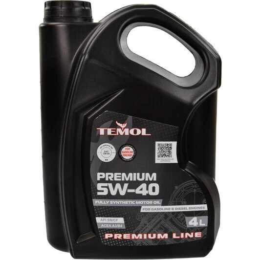Синтетична моторна олива TEMOL Premium 5w-40 придатна для використання у сучасних бензинових та дизельних двигунах (зокрема й з турбонаддувом), яким рекомендовано збільшений інтервал між замінами. Може використовуватися у двигунах, яким потрібна олива, що відповідає стандартам специфікації API SN, CF і ACEA A3/B4, A5/B5. Крім того, продукт відповідає вимогам ОЕМ-допусків таких автовиробників, як BMW, Renault, Mercedes, Volkswagen.