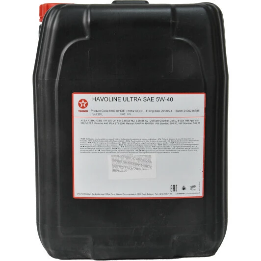 Опис товару: Texaco Havoline Ultra 5W-40 (20 л) моторна олива