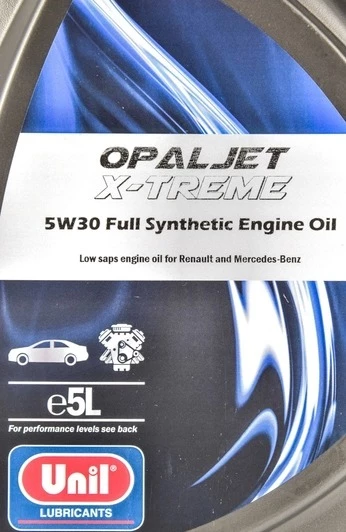 Синтетичну моторну оливу виробника Unil Opaljet X-treme 5W-30 призначено для двигунів Renault з фільтром сажі компанії, з датою випуску після 2007 року. Підходить також для Mercedes C 160 CDI.