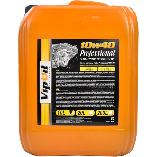Універсальність і надійність — головні переваги ВіпОйл Профешнал 10В-40. Її можна заливати у двигуни, оснащені турбінами або без них, які працюють на бензині, дизелі або зрідженому газі. Олива підходить і для легковиків, і для невеликих вантажних автомобілів.