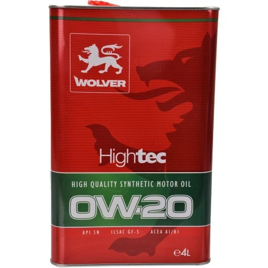 За міжнародними класифікаціями моторна олива Волвер Хай Тек 0В-20 має такі характеристики: ILSAC – GF-5; API – SN; SAE – 0W-20; ACEA – A1/B1.