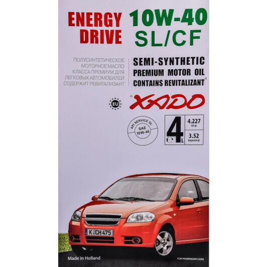 Моторна олива Xado Atomic Oil SL/CF 10W-40 напівсинтетична розроблена безпосередньо для моторів легкового автотранспорту. Належить до олив преміум класу.