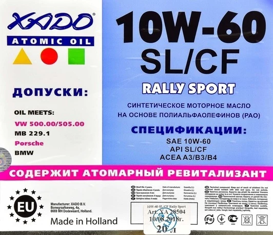 Опис товару: Xado Atomic Oil SL/CF Rally Sport 10W-60 (20 л) моторна олива